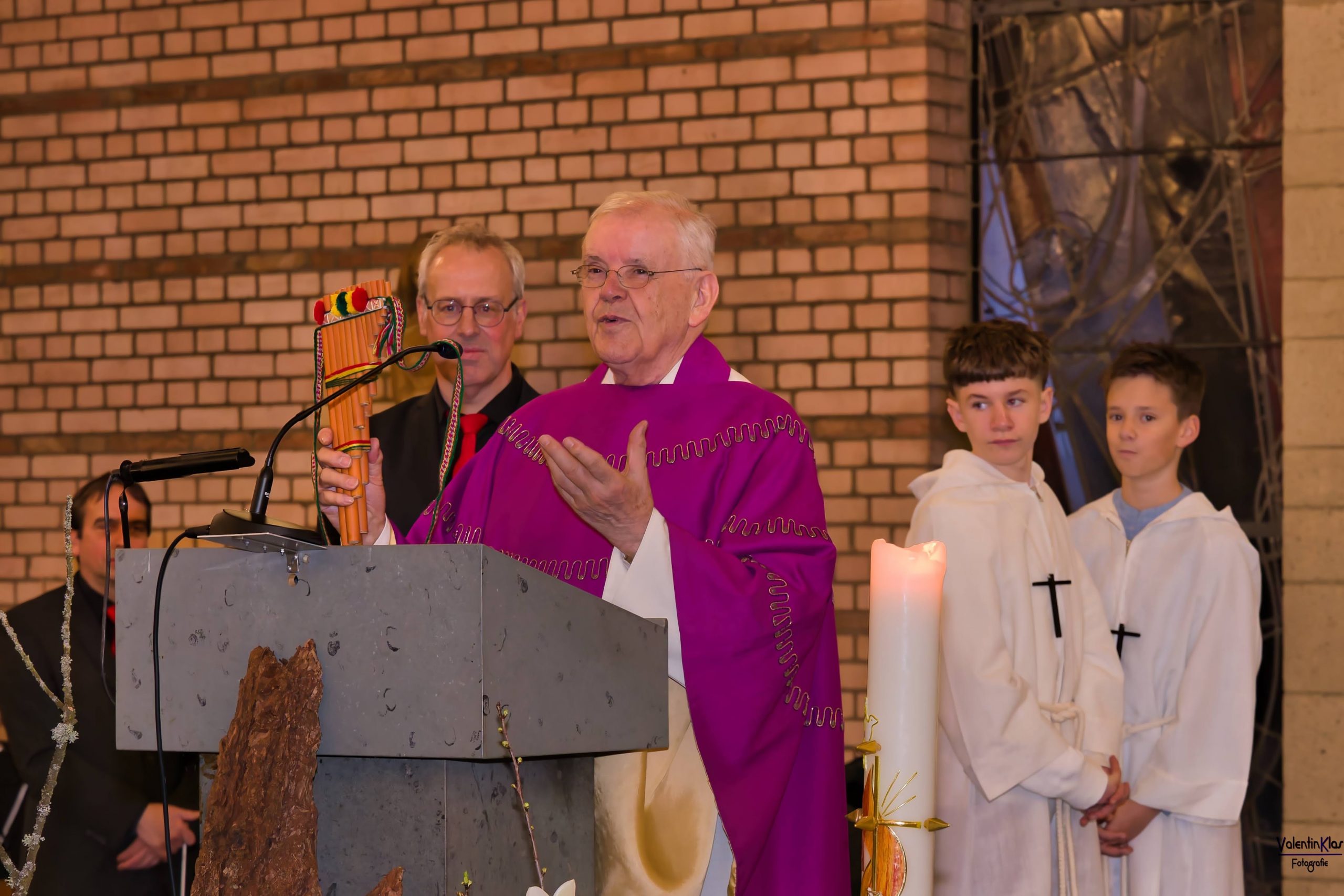 Hoffmann erinnerte an die frühen Begegnungen mit dem Musikverein, an die „wunderbare freundschaftliche Beziehung zwischen jungen und älteren Musikern“ und an prägende Momente mit Gründungsdirigent Bruno Lerbs. Besonders eindrucksvoll war seine theologische Deutung des Altarkreuzes, das er mit der Arbeit eines Dirigenten verglich: „Ohne neue Hellhörigkeit keine Einstimmung. Ohne Einstimmung keine Harmonie.“ In einer Welt voller Dissonanzen könne Musik Orientierung geben – ein Gedanke, der die Zuhörer tief berührte. Seine Botschaft war klar: Musik stiftet Gemeinschaft, überwindet Grenzen und schafft Frieden.
