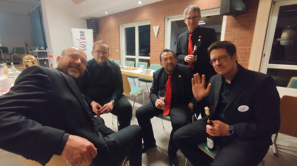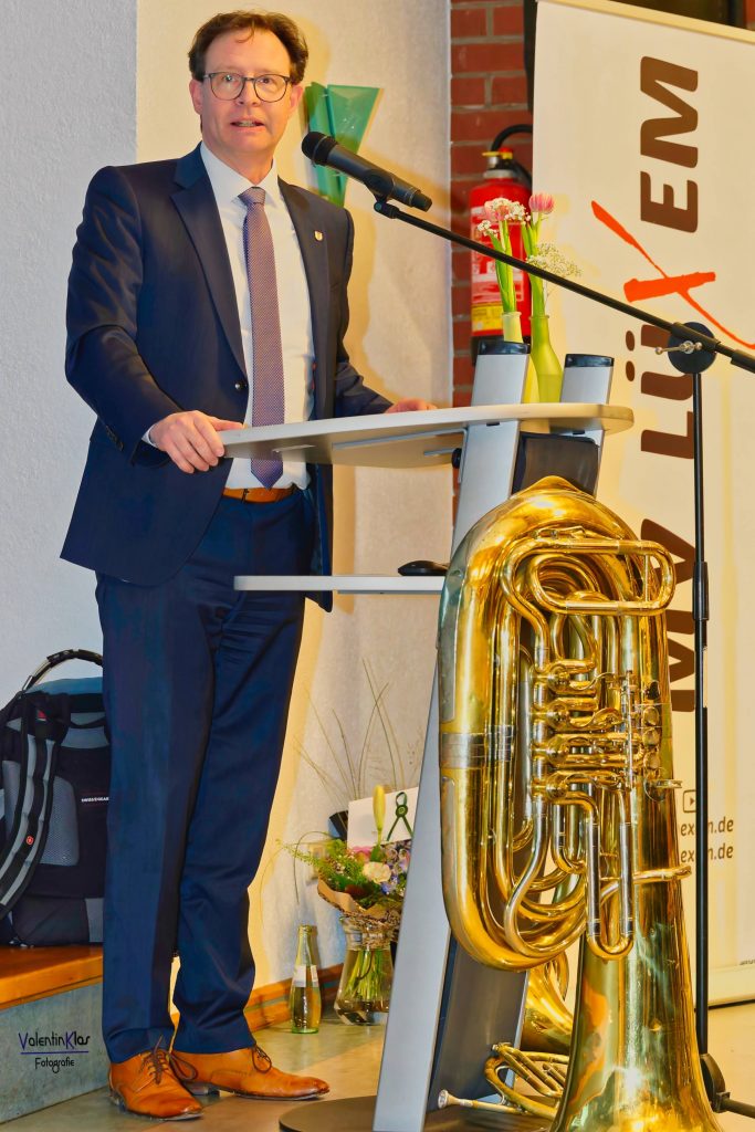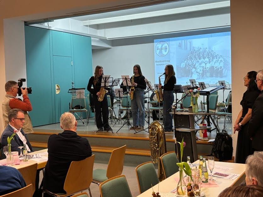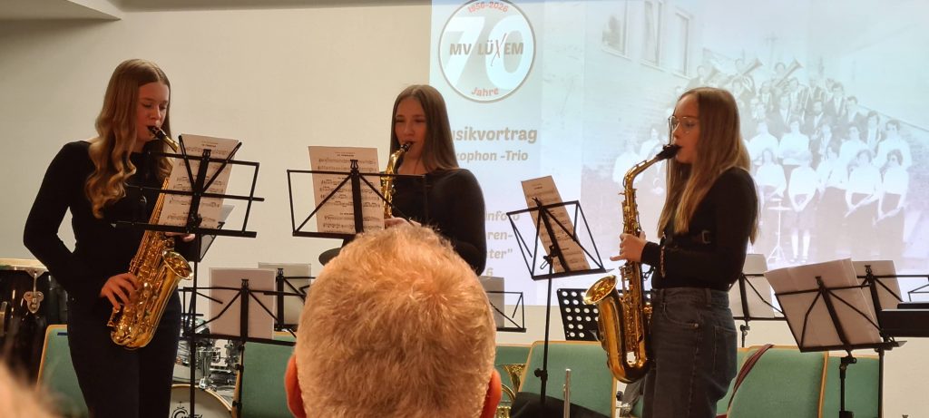 Zwischen den Reden sorgten das Projektorchester DeLüx und ein Saxophon‑Trio (Valentina von St. Vith, Emma Hergert und Annika Caspari) aus dem Jugendorchester für musikalische Glanzpunkte. Sie zeigten eindrucksvoll, dass der Verein nicht nur auf eine große Vergangenheit zurückblickt, sondern auch eine lebendige Zukunft hat: Über 30 Musikerinnen und Musiker unter 18 Jahren sind derzeit aktiv.