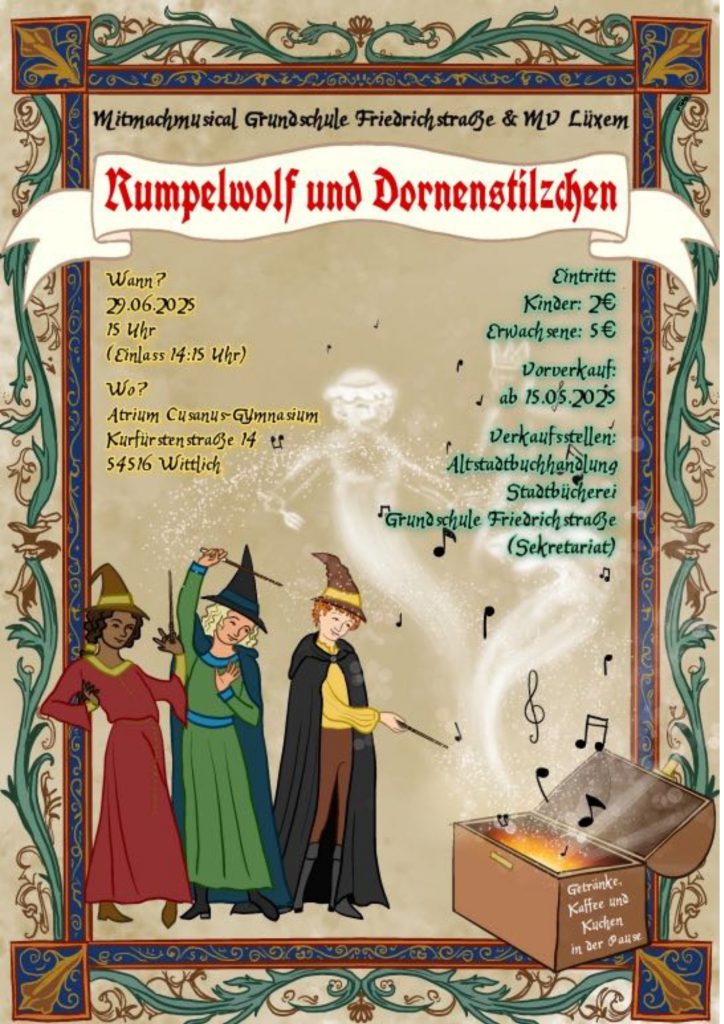 Die Grundschule Friedrichstrasse und der Musikverein Lüxem laden herzlich zu einem Kindermusical ein. Schülerinnen und Schüler der Grundschule präsentieren das fantasievolle Stück:
